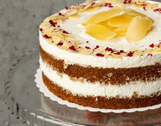 Ľahučká ananásová torta s mascarpone na korpuse z mandlí.