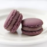 Zloženie: mandľová múka, vajcia, cukor, potravinárske farbivo, smotana na šľahanie, biela belgická čokoláda, čučoriedkové pyré