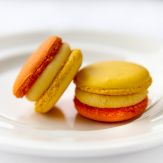 Zloženie: mandľová múka, vajcia, cukor, potravinárske farbivo, smotana na šľahanie, biela belgická čokoláda, mäta, rum, malinová pasta, káva, citrón, pistácie, soľ, tmavá belgická čokoláda, mango.
