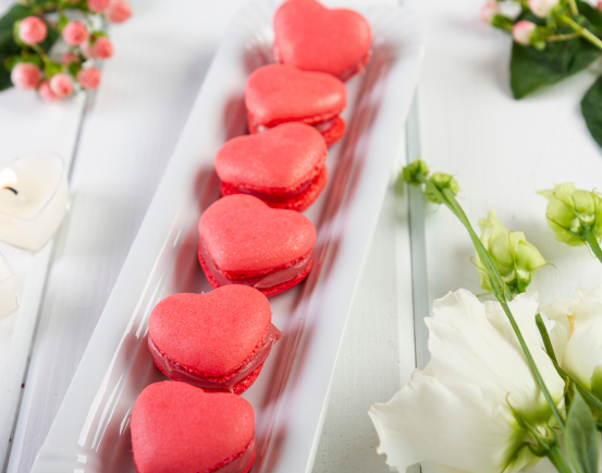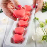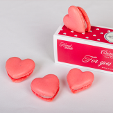 Zloženie: mandľová múka, vajcia, cukor, potravinárske farbivo, smotana na šľahanie, biela belgická čokoláda, malinová pasta