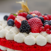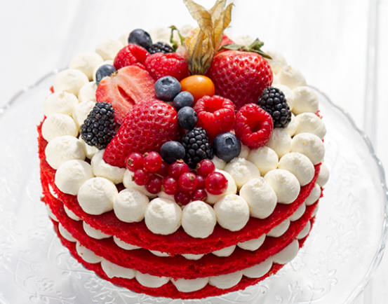 Zloženie: hladka múka,vajcia,cukor,maslo,potravinárske farbivo,kakao,cmar,kypriaci prášok,šľahačka,mascarpone,ovocie